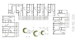 Les 28 nouveaux logements, orientés sud-ouest et ouverts sur des terrasses extérieures généreuses, sont conçus comme des modules et sont déclinables en différentes typologies à partir du T2 (T2, T3, T4 en duplex). Les trames et les accès de l’existant sont repris au sein du nouveau projet.