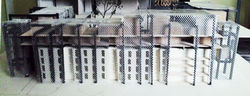 La structure acier autoportante de type poteau-poutres vient donner une unité au projet en supportant et en liant l’existant, l’extension et le square. Elle vient s’étendre dans le square et créer une quatrième façade au bâtiment créant ainsi une déambulation, une promenade, grâce à un enchevêtrement de passerelles. Cette structure supporte à la fois les nouveaux balcons ajoutés à l’existant, les appartements de l’extension, les coursives, les ascenseurs et les plateformes.