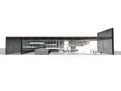 Coque d’aspect monolithique, soumise aux aléas du temps, vieillissant lentement et constamment, l’enveloppe du projet cache à la vue l’espace d’exposition, tels les hangars cachant les amoncellements de sel. L’extérieur et l’intérieur sont deux mondes opposés. L’un, très sobre s’impose à la vue dès le premier regard, l’autre plus subtil et plus complexe est découvert en intégralité en pénétrant l’enveloppe. L’Homme absent du monde extérieur est alors visible de tous côtés à l’intérieur grâce aux jeux de transparence, de rampes et de plateformes contenues dans une boîte en verre. Contrairement à la coque structurelle, que le visiteur ne peut ni approcher, ni toucher, la boite en verre est faite pour êtres parcourue, traversée et accueillir la présence du visiteur. Cependant elle ne peut exister sans son enveloppe qui joue le rôle de portique structurel et de régulateur de lumière. Ces deux mondes s’opposent et se complètent.